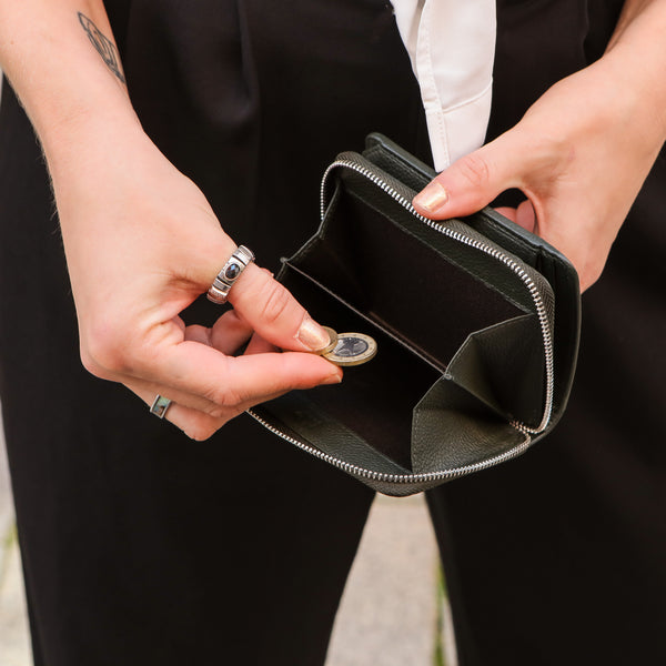 Mit separatem Münzfach, großem Scheinfach und mehreren Kartensteckplätzen bleibt alles übersichtlich sortiert.