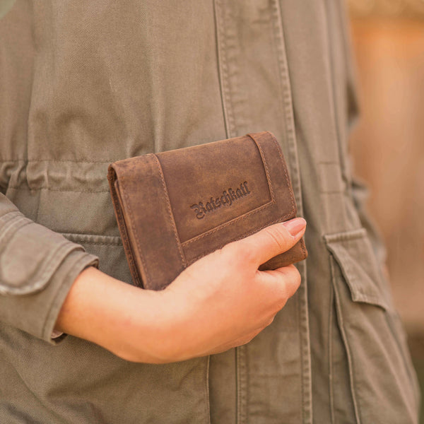 Unsere Lederwaren bestehen aus hochwertigem, robustem Büffelleder, das von Natur aus wasserabweisend ist. Leichter Regen macht ihnen nichts aus, jedoch sind sie nicht vollständig wasserdicht.