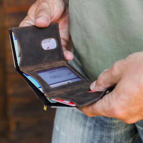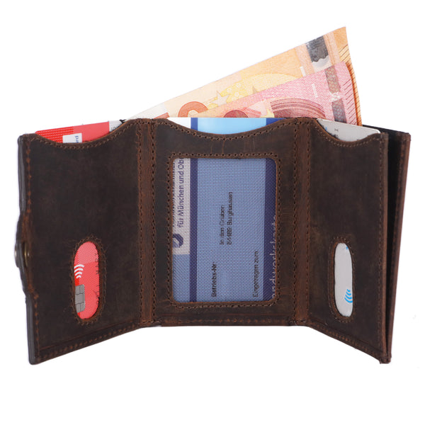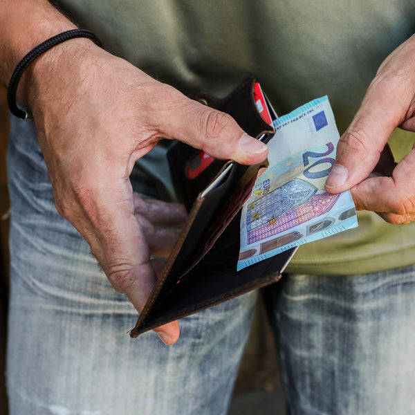 Das ist ganz einfach: Wir fertigen unsere Geldbeutel ausschließlich per Hand aus echtem vollnarbigen Büffelleder, welches als das robusteste Leder der Welt gilt. Zusätzlich versiegeln wir durch die besondere Schleiftechnik die Oberfläche der Geldbeutel. Während der Verwendung unserer Geldbeutel entsteht dadurch eine lebendige Patina die den individuellen Charakter dieses ausdrucksstarken Leders unterstreicht.