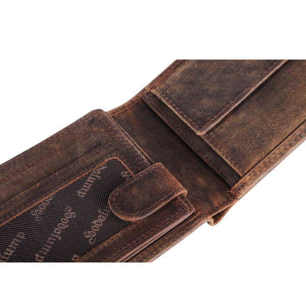 Die Classic Geldbörse Kare ist ein echter Charakterkopf: Rustikal im Look, geradlinig im Design und gefertigt für Männer, die Wert auf Qualität und Stil legen. Sie besteht aus bestem Hunterleder mit einem markanten, natürlichen Finish, das sich im Laufe der Zeit verändert – jede Nutzung, jeder Griff hinterlässt Spuren und macht deine Börse einzigartig. Der Vintage-Look mit klaren Kanten unterstreicht ihren kraftvollen Auftritt.