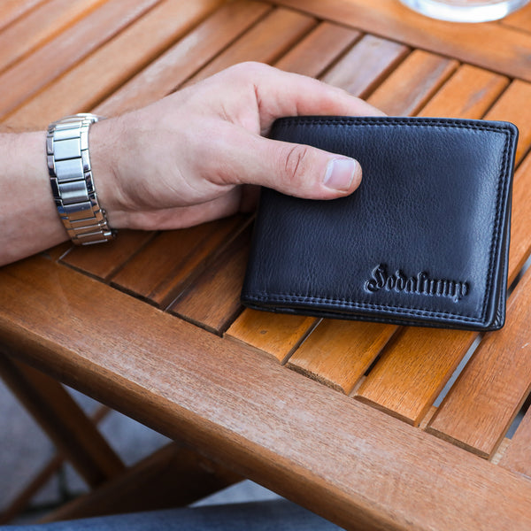 Das ist ganz einfach: Wir fertigen unsere Geldbeutel ausschließlich per Hand aus echtem vollnarbigen Büffelleder, welches als das robusteste Leder der Welt gilt. Zusätzlich versiegeln wir durch die besondere Schleiftechnik die Oberfläche der Geldbeutel. Während der Verwendung unserer Geldbeutel entsteht dadurch eine lebendige Patina die den individuellen Charakter dieses ausdrucksstarken Leders unterstreicht.
