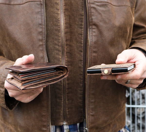 Das ist ganz einfach: Wir fertigen unsere Geldbeutel ausschließlich per Hand aus echtem vollnarbigen Büffelleder, welches als das robusteste Leder der Welt gilt. Zusätzlich versiegeln wir durch die besondere Schleiftechnik die Oberfläche der Geldbeutel. Während der Verwendung unserer Geldbeutel entsteht dadurch eine lebendige Patina die den individuellen Charakter dieses ausdrucksstarken Leders unterstreicht.