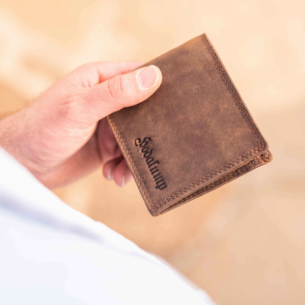Das ist ganz einfach: Wir fertigen unsere Geldbeutel ausschließlich per Hand aus echtem vollnarbigen Büffelleder, welches als das robusteste Leder der Welt gilt. Zusätzlich versiegeln wir durch die besondere Schleiftechnik die Oberfläche der Geldbeutel. Während der Verwendung unserer Geldbeutel entsteht dadurch eine lebendige Patina die den individuellen Charakter dieses ausdrucksstarken Leders unterstreicht.
