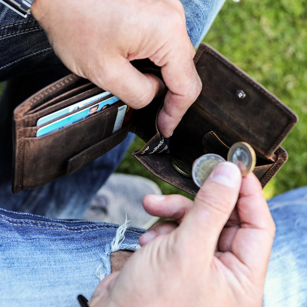 Das ist ganz einfach: Wir fertigen unsere Geldbeutel ausschließlich per Hand aus echtem vollnarbigen Büffelleder, welches als das robusteste Leder der Welt gilt. Zusätzlich versiegeln wir durch die besondere Schleiftechnik die Oberfläche der Geldbeutel. Während der Verwendung unserer Geldbeutel entsteht dadurch eine lebendige Patina die den individuellen Charakter dieses ausdrucksstarken Leders unterstreicht.