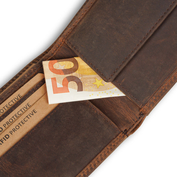 Die Flache Geldbörse Benny ist für alle, die es unkompliziert, kompakt und robust mögen. Gefertigt aus echtem, geöltem Hunter-Leder im Vintage-Look, bietet sie dir genau das, was du im Alltag brauchst – nicht mehr, nicht weniger. Ob in der vorderen Hosentasche, im Jackeninnenfach oder im Business-Outfit: Benny passt rein, ohne aufzutragen.