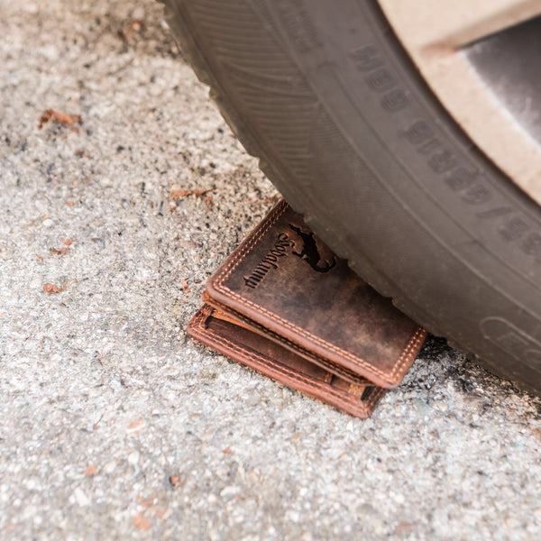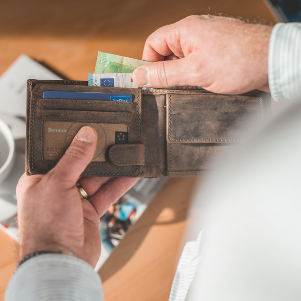 Das ist ganz einfach: Wir fertigen unsere Geldbeutel ausschließlich per Hand aus echtem vollnarbigen Büffelleder, welches als das robusteste Leder der Welt gilt. Zusätzlich versiegeln wir durch die besondere Schleiftechnik die Oberfläche der Geldbeutel. Während der Verwendung unserer Geldbeutel entsteht dadurch eine lebendige Patina die den individuellen Charakter dieses ausdrucksstarken Leders unterstreicht.